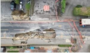 Godstone, : A large sinkhole has appeared in a southern English village, swallowing up at least one garden and forcing...