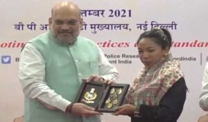 New Delhi : Home Minister Amit Shah on Saturday felicitated Tokyo Olympics silver medalist Mirabai Chanu at the 51st Foundation...
